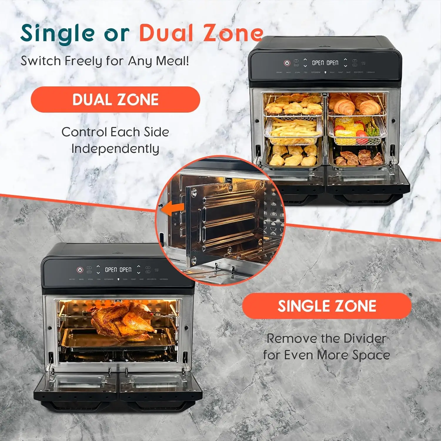 24Qt Dual Zone Air Fryer Oven with Rotisserie, Digital 1800W 10-in-1 Convection Toaster Oven Combo Stainless Steel