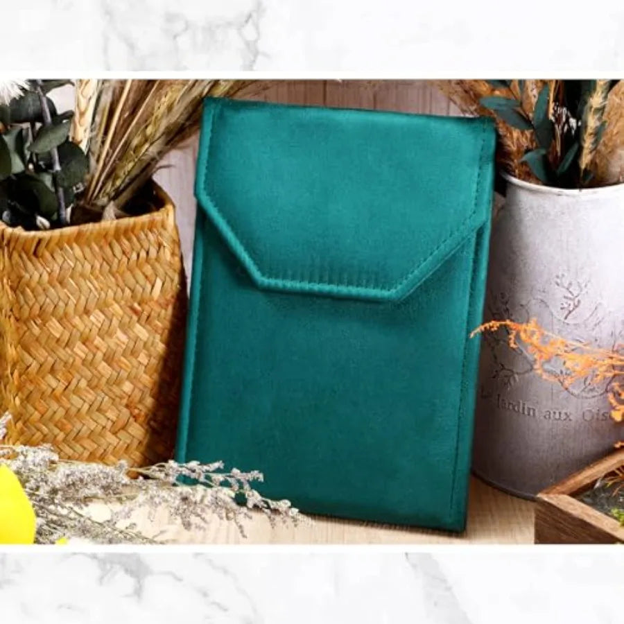 6 Pcs Velvet Necklace Jewelry Display Folder Travel Necklace Organizer Women Pearl Jewelry Pouch Gift Bag Green