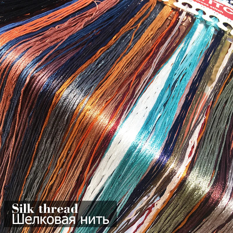 Cross stitch embroidery silk thread details
