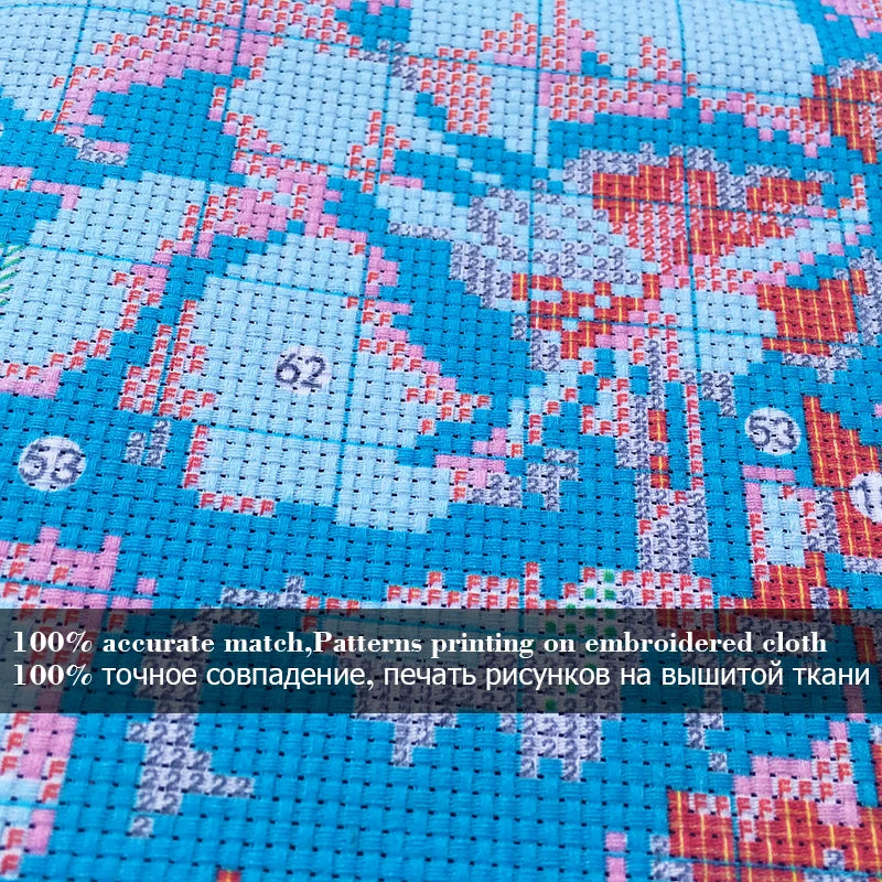 Printed cross-stitch, cross-stitch printed on the cloth, using the latest laser technology, the cross-stitch pattern is completely printed on the embroidered cloth with special ink, and the pattern is clear and easy to distinguish, and 100% accurate, unbiased Grid.